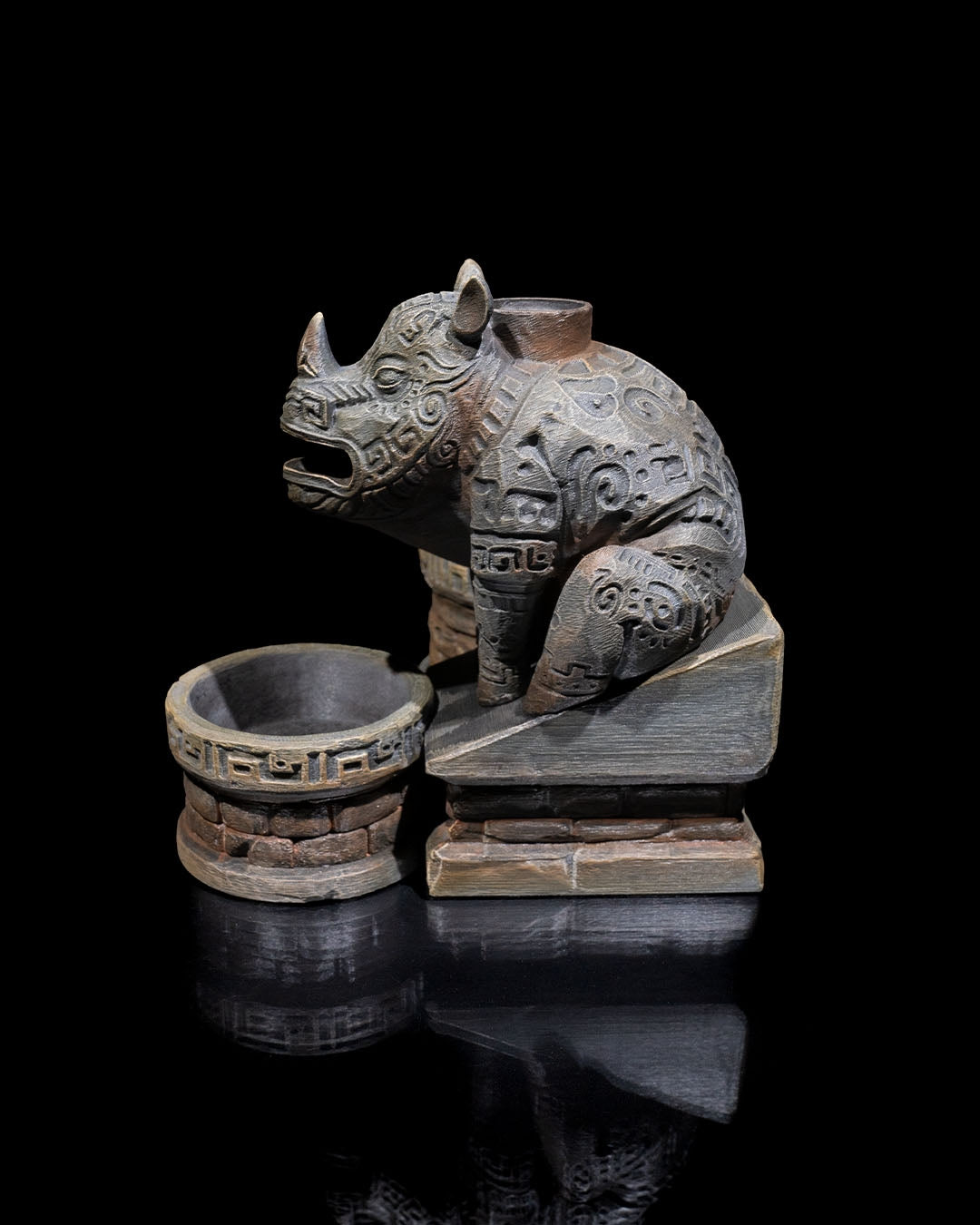 De betoverende backflow wierookhouder in de vorm van een oude tempel met een majestueus eenhoornstandbeeld. De rook stroomt sierlijk uit de mond van de eenhoorn, alsof het magische adem is, terwijl het antieke ontwerp een gevoel van mysterie en sereniteit oproept. Daarnaast biedt de houder ruimte voor een klein plantenpotje, waardoor je een vleugje natuur kunt toevoegen aan deze magische sfeer.