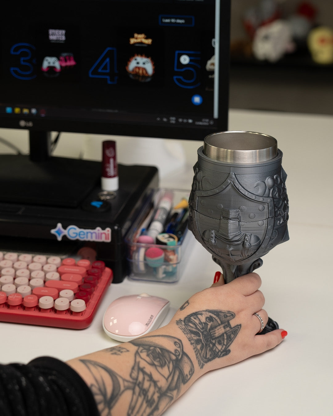 Deze set van twee bekerhouders combineert de kracht van een wolf en de moed van een ridder. Eén houder toont een imposant wolvenhoofd, symbool van instinct en loyaliteit, terwijl de andere een dappere ridder met schild en zwaard weergeeft. Perfect voor fantasy- en middeleeuwenliefhebbers, deze houderduo brengt een heroïsche en wilde sfeer naar je tafel of gameroom.