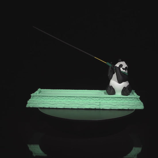 Schattige 3D-geprinte panda wierookhouder, met uniek ontwerp waarbij de panda op een fluitje blaast terwijl het wierook brandt.