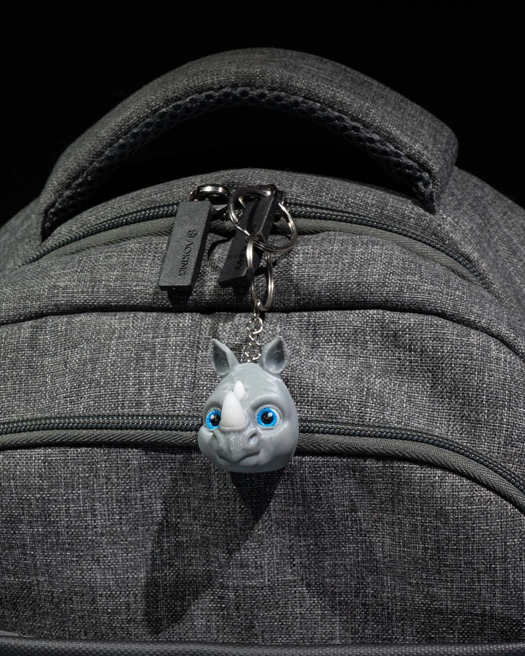 Deze "Rhino" sleutelhanger hang je aan je sleutelbos, rugzak of andere diverse plaatsen.
