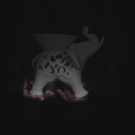 Exotische 3D-geprinte olifant wierookhouder, met elegant design en ruimte voor het plaatsen van wierookstokjes.